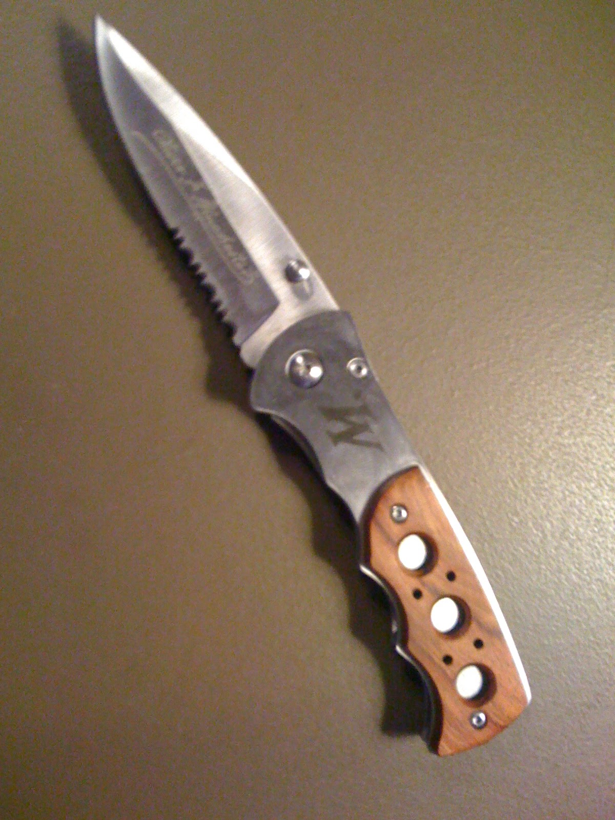 Lastly, my own knife, not that i really need it. But i still love it, my dad was telling me about how his dad took my dad and his brothers out to get they're own knives sometime. and now it's passed down to me, my dad took me to check out some knives and i picked this one out ^^