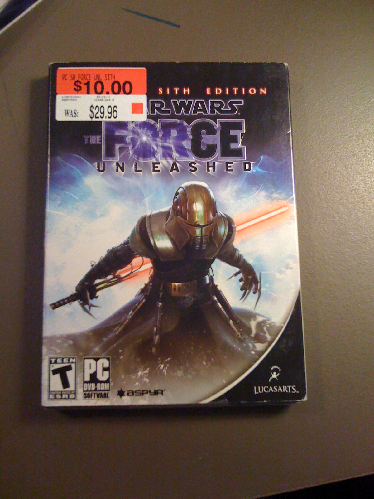 This me and my dad snatched up at WalMart in the cheap video game section, 10$ for the Force Unleashed Ultimate Sith Edition! A steal even if it's for the PC